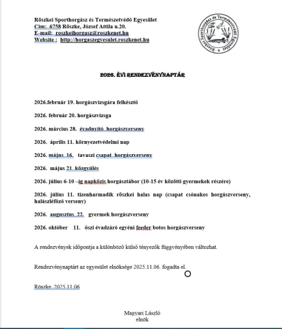 Rendezvénynaptárt az egyesület elnöksége 2025.11.06. fogadta el.